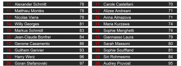 De nombreux Français avaient pris aux qualifications et ont participé a cette finale, beaucoup ont brillé… Nous avons fait notre possible pour rassembler le plus de résultats possible mais pour l’heure nous n’avons pas le classement complet des équipes.