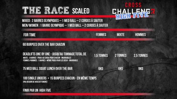 Deadlift : femmes : 1.5 tonnes, mixte : 2 tonnes, hommes : 2.5 tonnes
