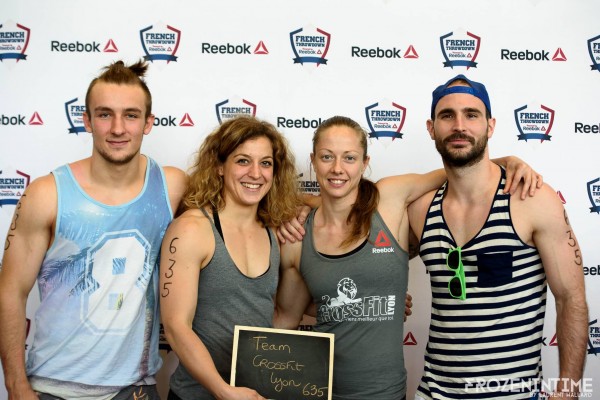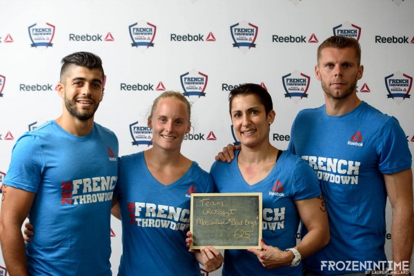 GaliléÔ contre attaque prend la 7ème place en 9’20, Team Alsac (CF Strasbourg) est 12ème en 10’42, les Daltons de GaliléÔ sont 15ème en 11’14, Blood Sweat and Beers (Discover CF), 16ème en 11’48, CF Lyon, et les « Bad Boys » de CF Massilia prennent la 17ème place en 11’57, Team Soyouz (CF Hiringa) est 19ème 12’06, Tanka LXXXIII (CF Tanka), 21ème en 12’36, RCFL Epsilon funky Stamina (Reebok CrossFit Louvre) est 23ème en 12’49, Wilcard (CF ST Maur) est 25ème en 13’11, team Ostal (CF La Gardiole), 26ème en 13’32, Fit and Rack (CF des Monts), 28ème en 13’58, team double Biceps (CF L 700) est 32ème en 17’02, CF Montpellier est 33ème en 17’18, team 1789, 34ème en 17’35, R2 rien (R CrossFit), 37ème avec 175 reps, Fat and squat ! (CF Vitrolles) et French invictus team Hostilius, 38èmes avec 171 reps et CF Brest 40ème avec 157 reps.