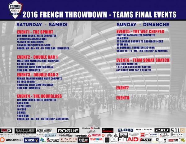 A quelques jours du début de la prestigieuse compétition Parisienne, les French Throwdown, organisée de main de maître par Daniel Chaffrey et toute l’équipe de Reebok CrossFit Louvre, les WODS ont été dévoilés.