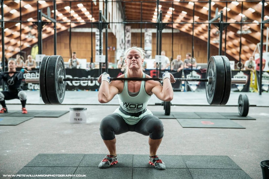 15 E : Jo Caulton, CrossFit Deviant (Royaume-Uni), 26 ans, 67 kg, 109ème du Regiona l’an dernier, elle semble avoir bien progressé