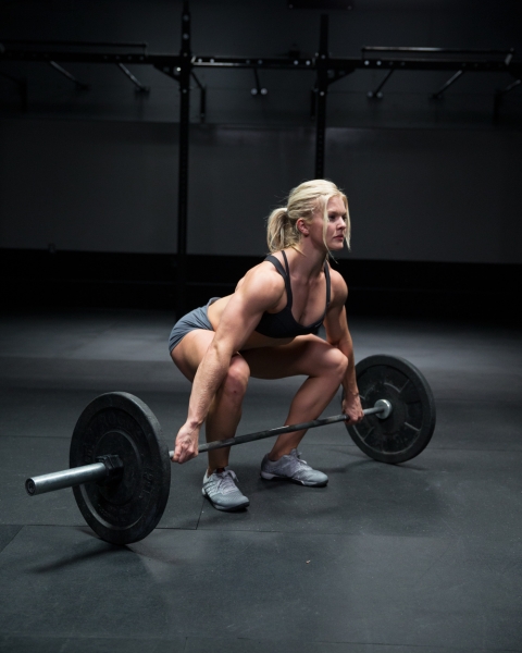 Si vous utilisé une barre vide, ou si la barre est chargée avec des poids plus petits que les bumpers standards, chaque répétion commence avec la barre clairement sous les genoux.