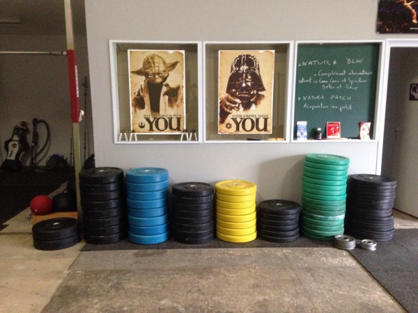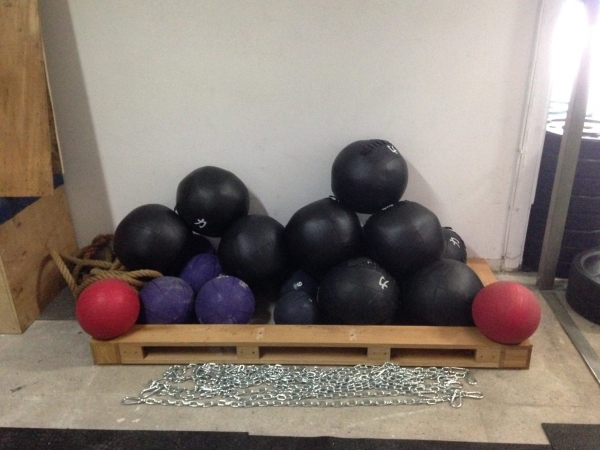Nous avons un grand Rig, des keetlebells, wall ball, slam ball, barres olympiques, bumper, box…