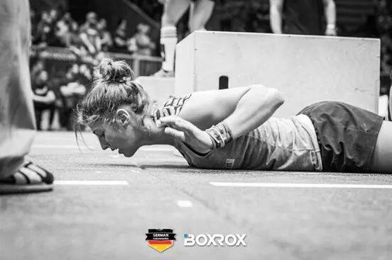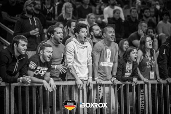 J’ai participé aux German Throwdown fin novembre, c’était donc ma première compétition (où elle a pris une belle 12ème place sur 36 participantes). Toute une équipe de supporter a répondu présent (nous étions une trentaines entre les adhérents de CrossFit Lyon et de 100 Pourcents CrossFit de St étienne). Cette ambiance avec tous les amis à tes côtés, c’était vraiment génial ! De plus, les coachs pouvaient descendre et accompagner les athlètes sur l’arène, ça ma vraiment plu, et aidé d’avoir mon coach (Florent Paillasson) pour m’encourager et me guider durant les différents WOD.