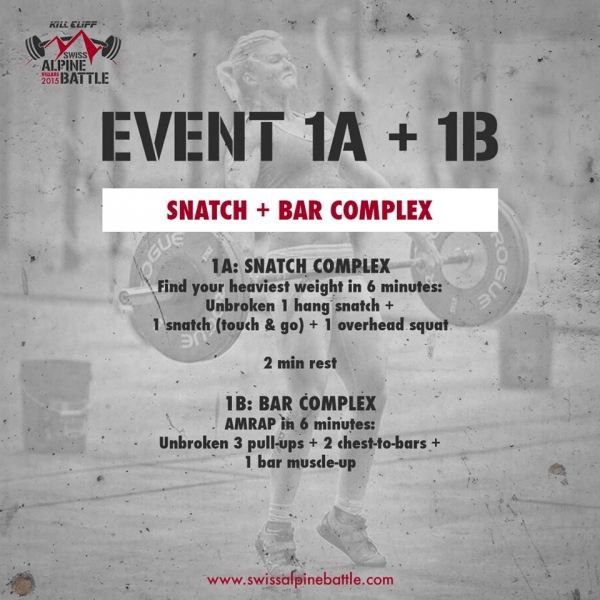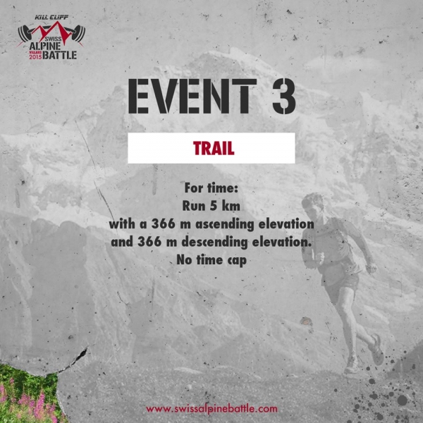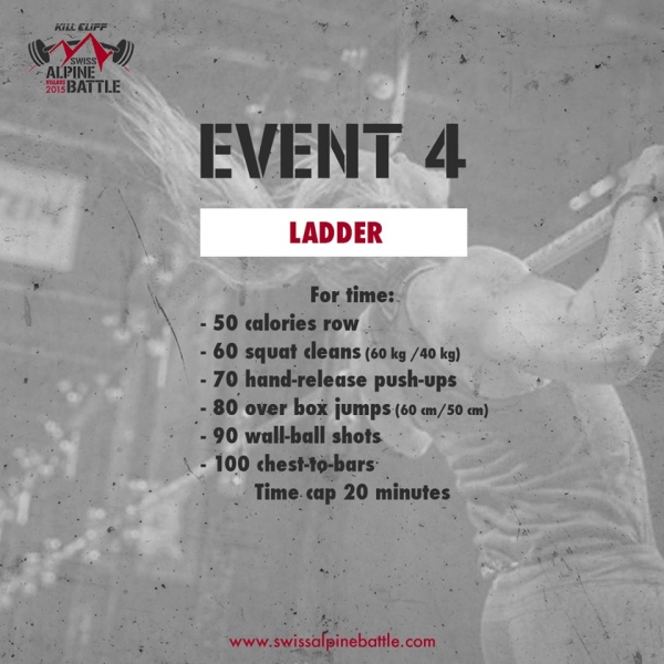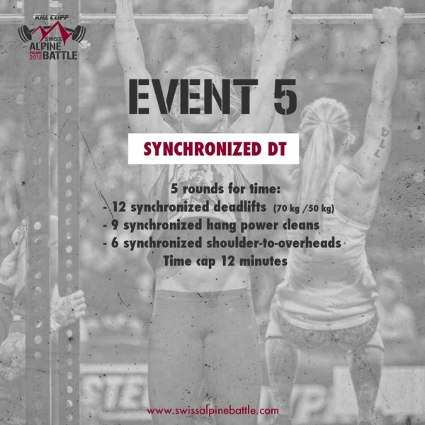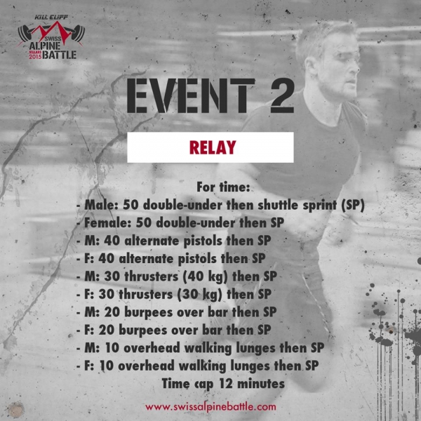 Mixte : Lukasdottir signe enfin une victoire dans cette compétition en terminant ce WOD en 3’42. L’équipe Kill Cliff est 2nde en 4’08 et Yohann et Elise de Earthquake by GaliléÔ prennent la 3ème place en 5’32 ce qui leur permet de grimper sur la 3ème marche du podium du Swiss Battle Alpine.