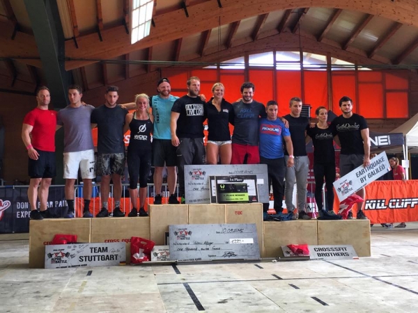 Hommes : les CrossFit Brothers remportent une nouvelle victoire en 33’55 avec une belle avance sur l’équipe des Barbarians, second en 35’41 et qui devance au sprint la team Stuttgart, 3ème en 35’57.