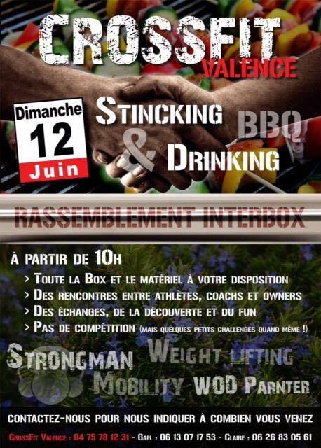Le 12 juin, CrossFit Valence organise un Stincking and Drinking ouvert à tous avec la participation d’autres boxs. Ce n’est pas une compétition mais toute la box (et le matériel) seront à votre disposition pour vous entrainer ou vous challenger ! Chacun emporte un plat ou une boisson à partager.