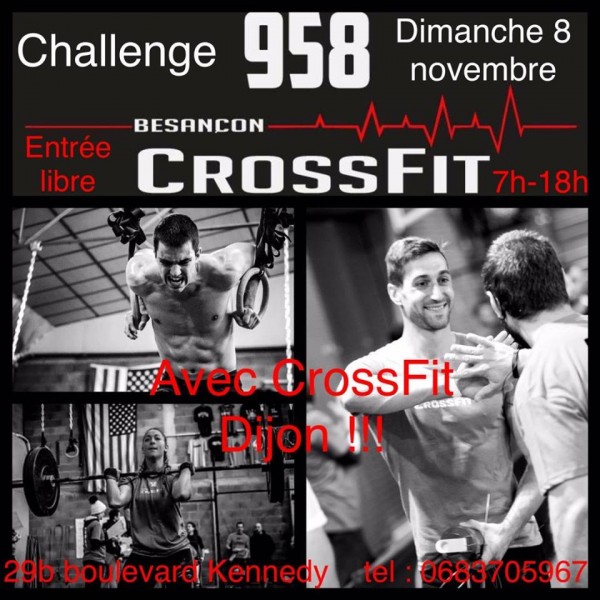 Dimanche 8 novembre CrossFit Besançon organise un le Challenge CrossFit Besançon 958 avec CrossFit Dijon.