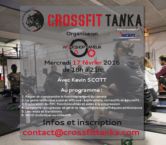 CrossFit Tanka organise un 3ème workshop rameur avec Kevin Scott. Cette formation a déjà porté ses fruits puisque l’équipe de CrossFit Tanka a pris la 3ème place du challenge box affiliées des championnats de France d’aviron indoor !