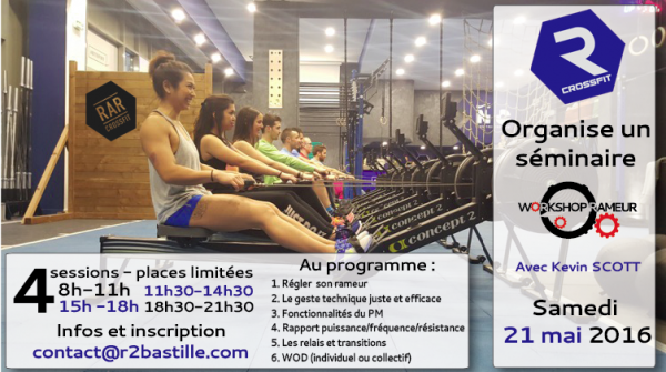 Pour les CrossFitters de la région Parisienne : RCrossfit et RAR CrossFit organisent un séminaire #WorkshopRameur le 21 mai prochain !