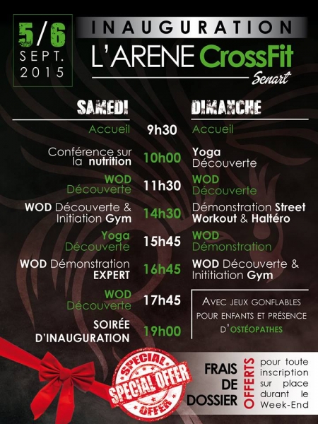 La Box CrossFit Lisses située 2-4 allée du Vivarais a Lisses organise un week-end portes ouvertes le samedi 5 et le dimanche 6 septembre 2015 de 8h a 19h permettant de faire découvrir le CrossFit au plus grand nombre ainsi que ses différentes spécialités telles que le CrossFit Kids et le Strongman (l’homme le plus fort du monde).