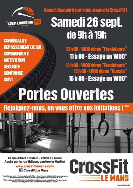 Samedi 26 septembre, toute la journée, ce sont les portes ouvertes à CrossFit Le Mans !