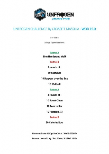 Il s’agit ici d’un Workout test, le 15.0 est gratuit ! Le 15.1 sera payant avec une inscription en ligne et un T-shirt associé. Le 15.0 est un peu le passeport CE2 des crossfiteurs ! Il prend fin le 31/07/15.